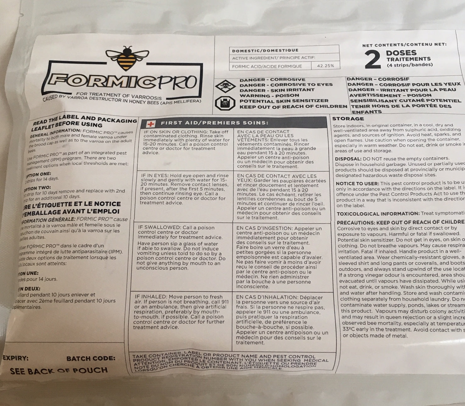This is an Organic Varroa Mite Treatment. These new improved strips are a Formic Acid polysaccharide gel strip that have a longer shelf life (2 years) than the previous MAQS (Mite Away Quick Strips). When placed in the brood chamber it is an organic miticide that kills mites where they reproduce, in the capped brood cells.