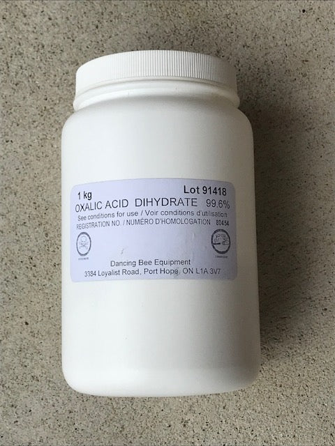 Oxalic Acid 99.65% is used to treat Varroa Mites once all the brood has hatched in the fall. This acid does not penetrate cappings. Can be used by vaporizing or trickle method with sugar syrup. Treats 560 colonies.